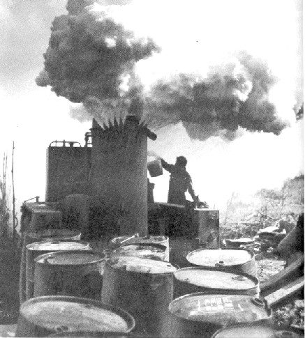 M1 Smoke Generator This device burned about two 55-gallon drums of oil per hour to produce smoke to cover the Allied positions.